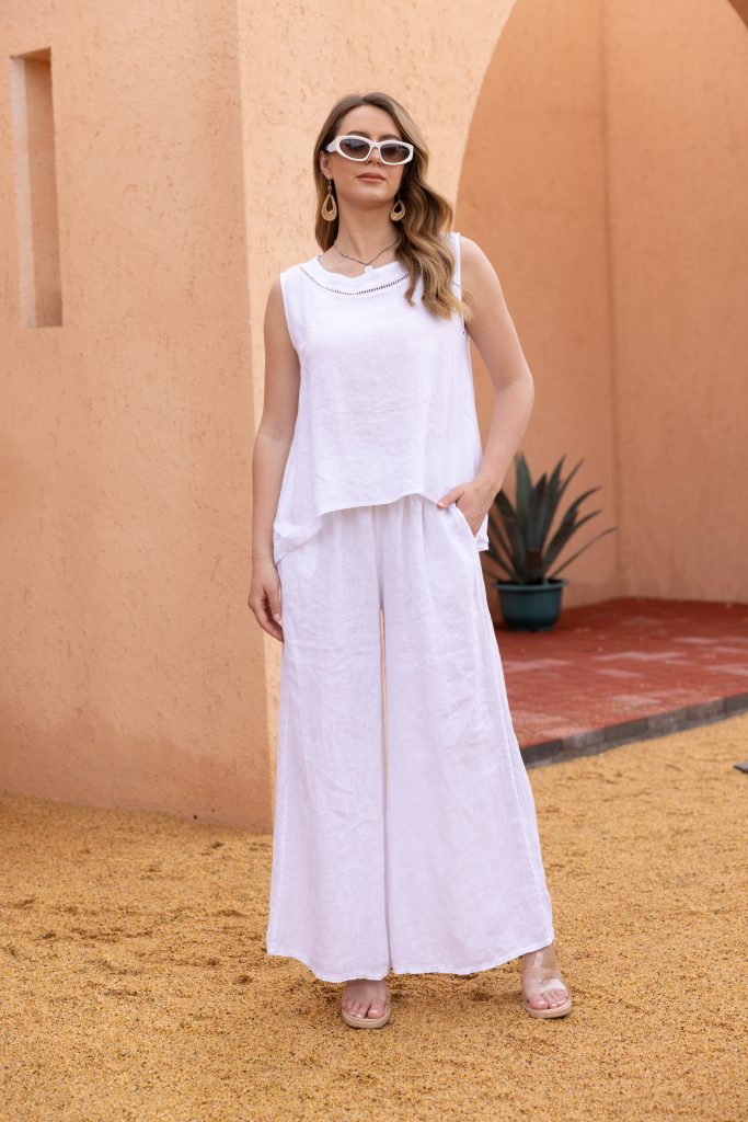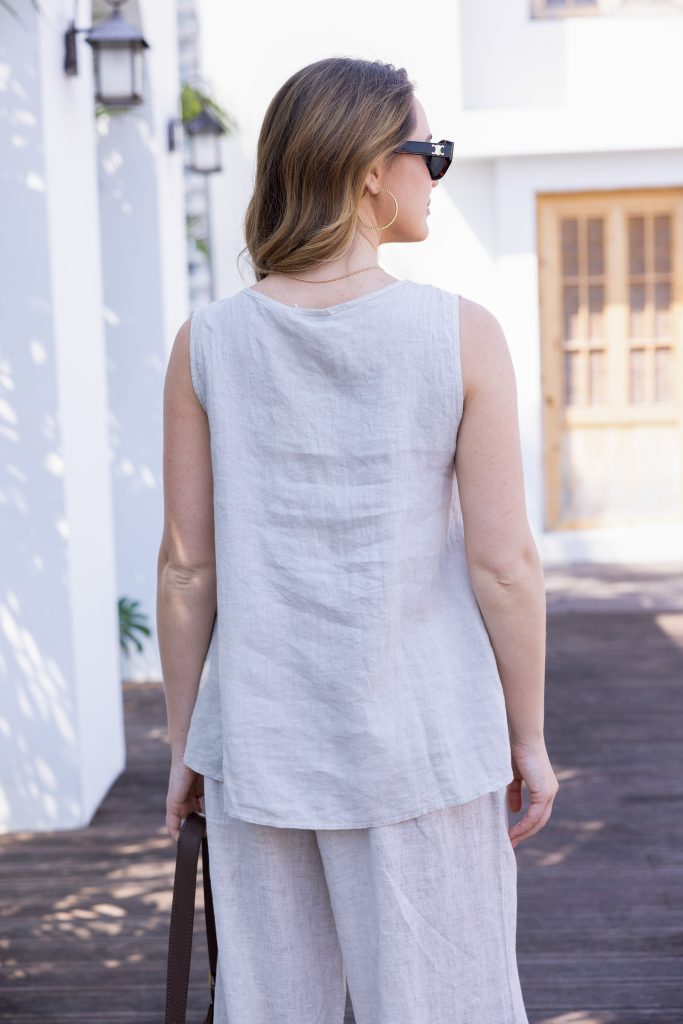 Delicate and sophisticated, Amelia’s Ladder Top features intricate ladder-style detailing around the collar, created with a series of small square cutouts for a subtle, geometric charm. With a soft silhouette and versatile design, this top adds a modern, elegant touch to both casual and dressier outfits.