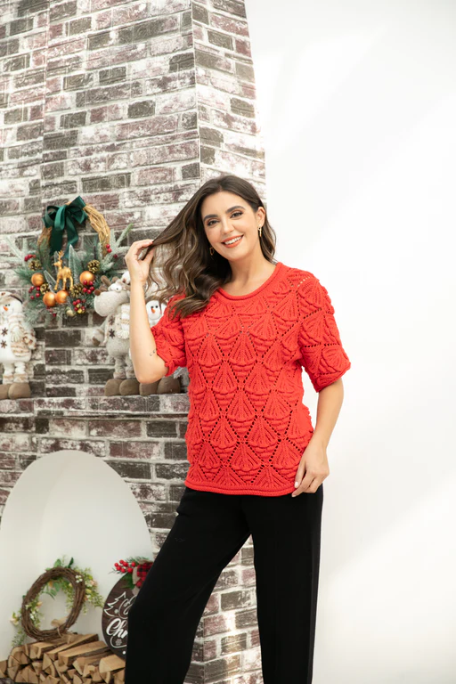 Orange Fashion Arabella’s Crochet Knit SS Top (available in three colours)