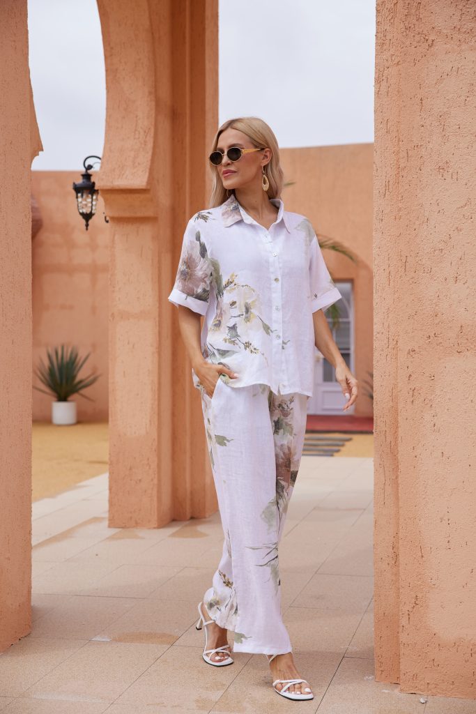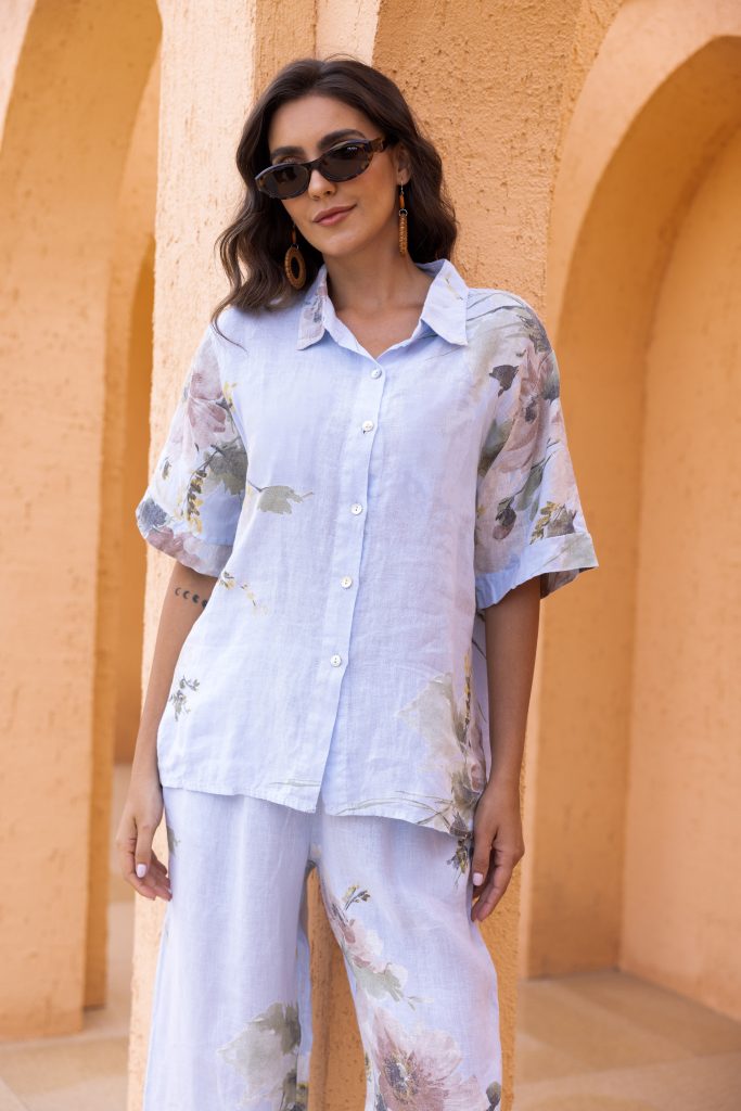 Bring a touch of sunshine to your wardrobe with Flora’s Graceful Top. Crafted in soft, breathable linen fabric, this top features a delicate buttoned top with a floral print that adds just the right amount of charm to your everyday look.
