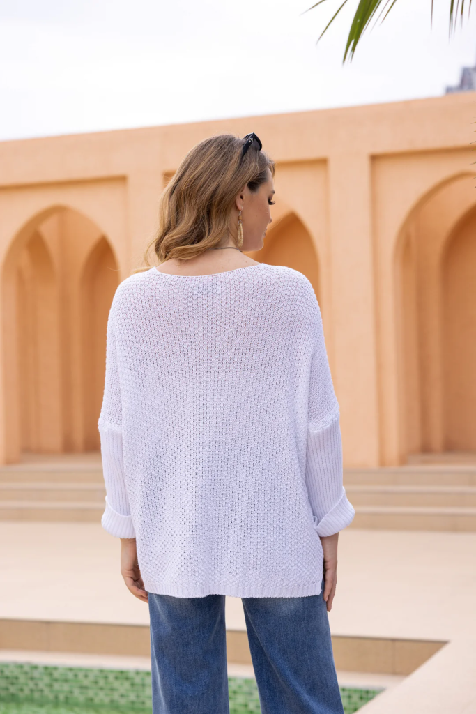 Playful and stylish, the Say Love Knit Top features a cozy knit-crochet texture paired with a shiny “Love” text at the front for a fun, eye-catching detail. Featuring long sleeves that can be rolled up and a relaxed silhouette provide comfort and ease, making it perfect for casual outings, layering, or adding a cheerful statement piece to your everyday wardrobe