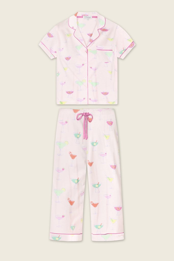 P.J Salvage Whimsy Sip Happens Cropped PJ Set (Light Pink)