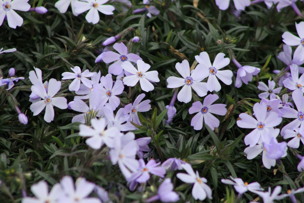 Moss phlox grows into a low mound of dark green needle-like leaves covered in tiny flowers in late spring. Grown in a rock garden or sunny border, moss phlox will create a wonderful display of colour. Grows to 4″ high. Sun.
