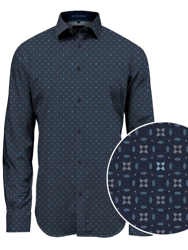 Discover the PZ mens luxury long sleeve poly/cotton shirt, combining timeless elegance with a modern touch. This all over print shirt features a semi fit design for comfort, style and easy iron fabric for effortless wear.