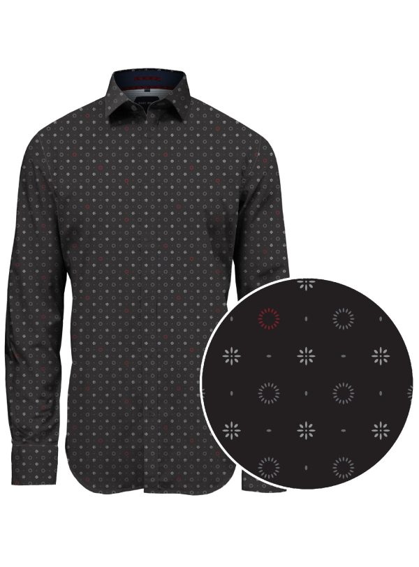 Discover the PZ men’s luxury long sleeve poly/cotton shirt, combining timeless elegance with a modern touch. This all-over-print shirt features a semi-fit design for comfort and style, and easy-iron fabric for effortless wear.