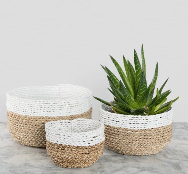 | Materials | Made with woven seagrass and recycled plastic rope. |