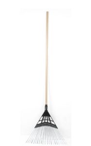 The Pro-Yard Lawn Rake is 18″ wide at the base and has 22 steel tines with a wood handle. It’s springback design provides smooth raking action. This leaf rake is perfect for raking up leaves and general cleaning up of your lawn.