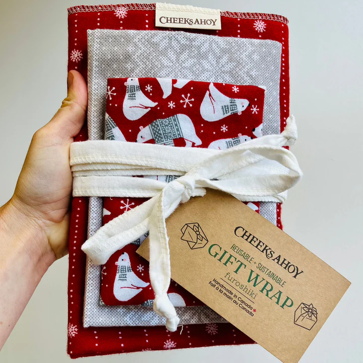 Furoshiki is the traditional Japanese art of swathing with fabric to wrap and transport items. Unlike reusable gift bags that have a fixed size and shape, the Furoshiki is highly versatile and can be adapted to suit the exact needs of the specific objects to be carried, leaving you with a beautiful (and zero-waste) alternative to gift wrap.