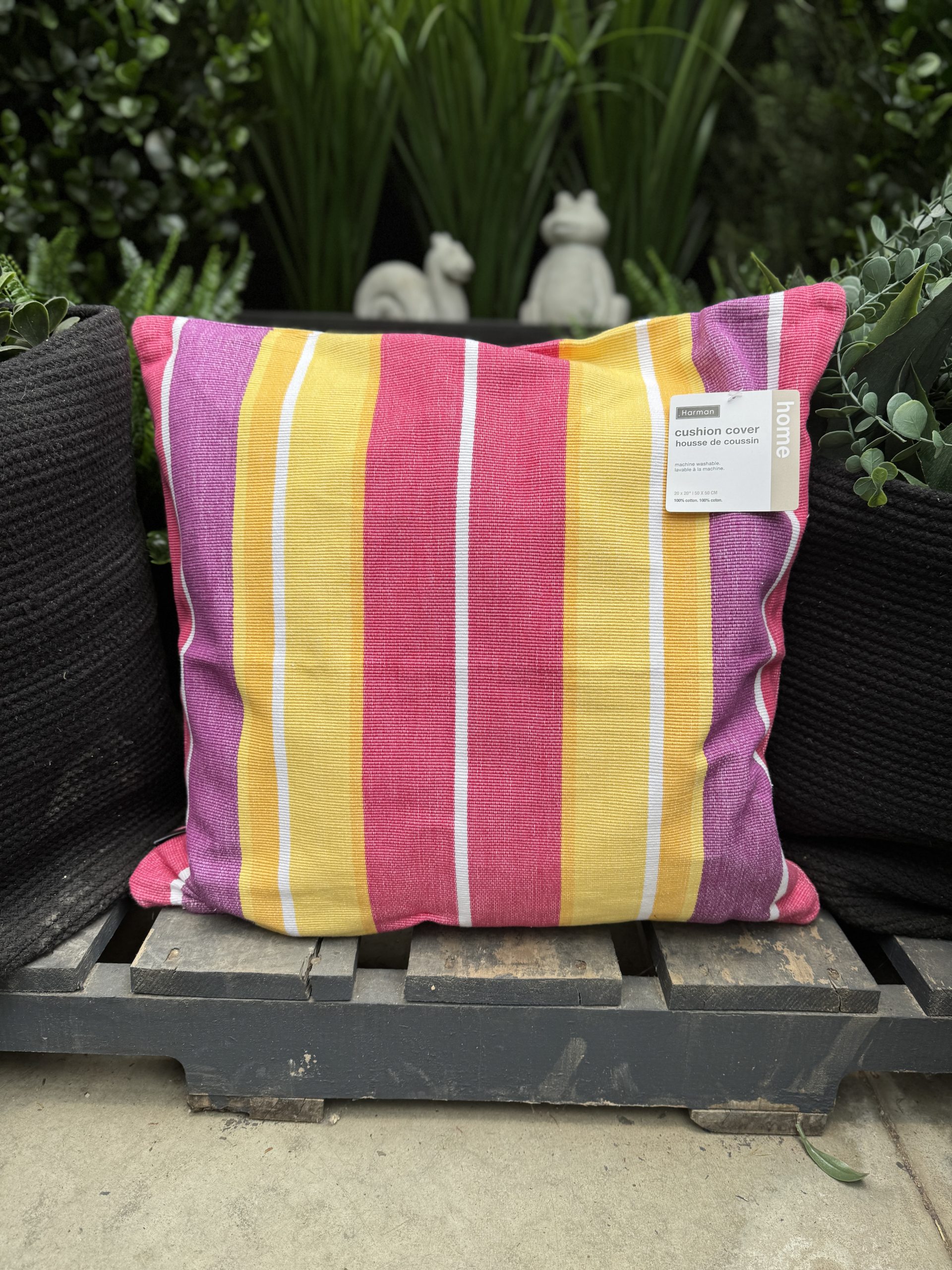 Ribbed Multi Stripe Berry Cushion 18×18″