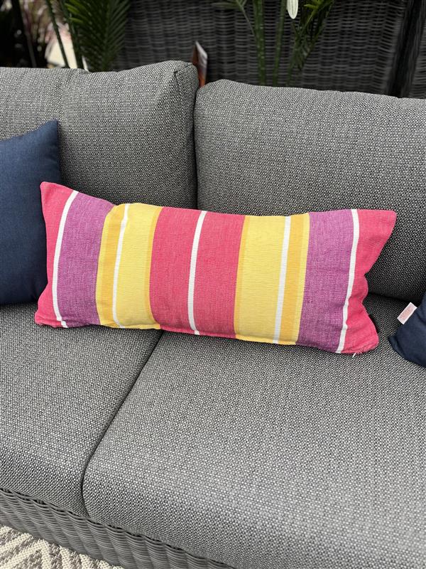 Ribbed Multi Stripe Berry Lumbar Cushion 13×28″