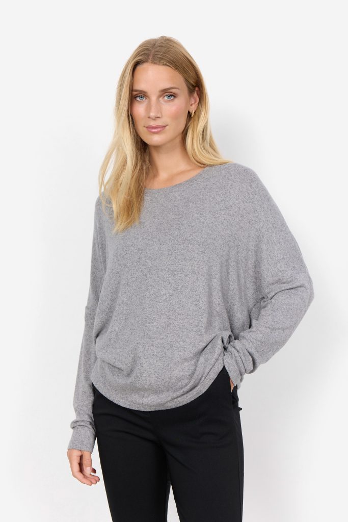 It has a round neckline, an elastic ripped edge at the cuffs, and a loose fit. This sweater is a basic item and a must-have in every wardrobe.
