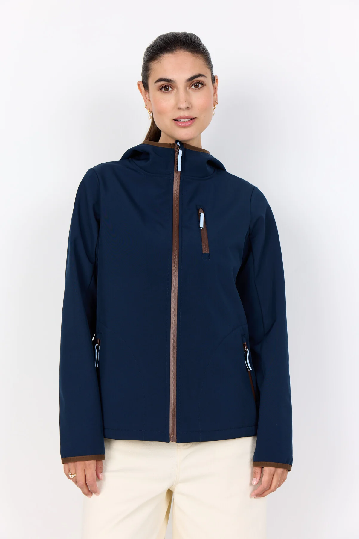 JULLA 10 is a Jacket made from 100% Polyester. It features a sleek hood, contrasting zipper details, and practical pockets. Pair it with casual pants or a simple dress for a relaxed look.