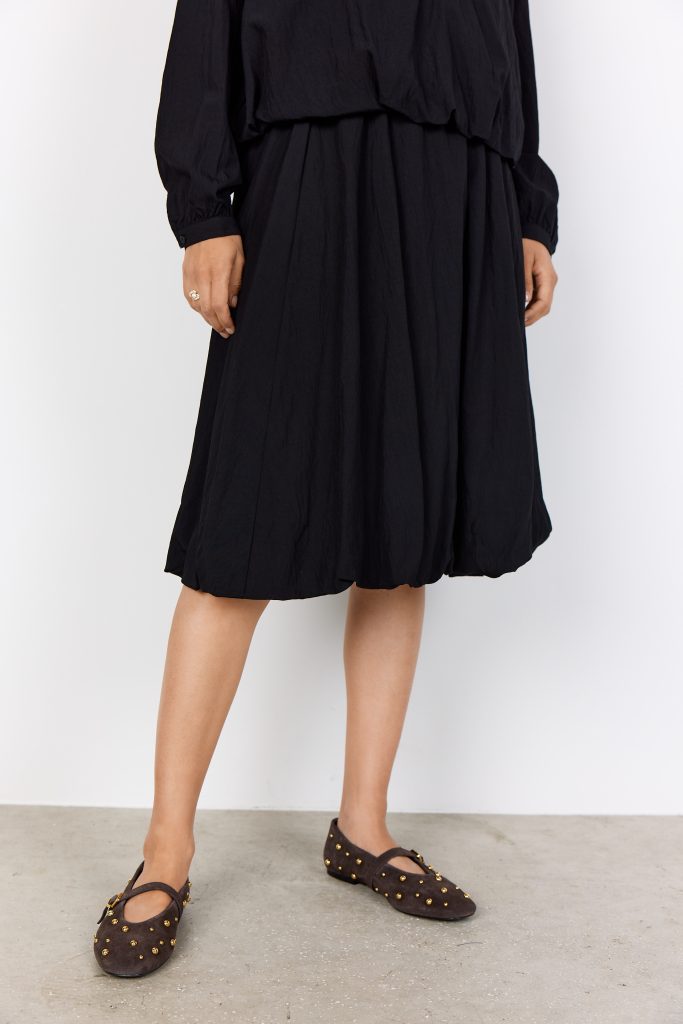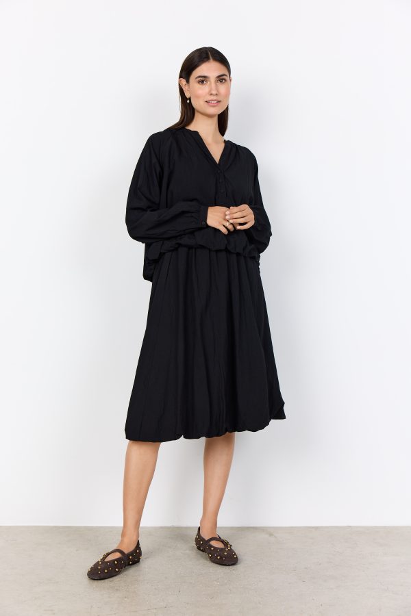 It features a midi length with a gathered waist, providing a fluid and elegant drape. Pair it with a simple top and flats for a comfortable and stylish outfit.