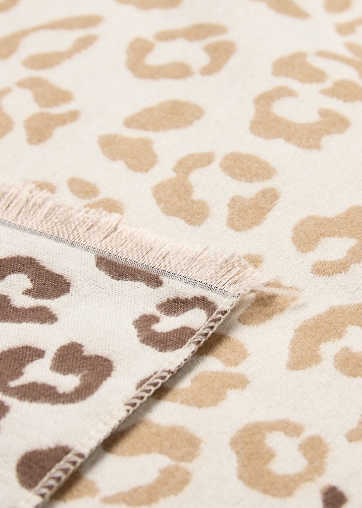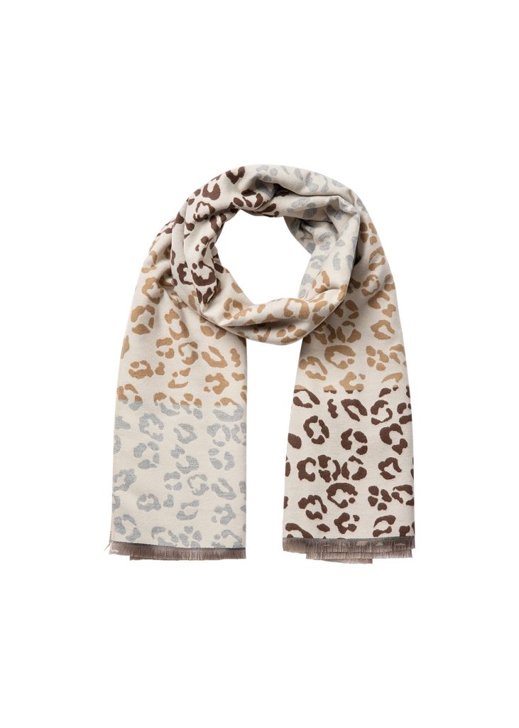 The scarf features a soft texture with a striking animal print design. Pair it with a simple outfit to add a touch of interest.