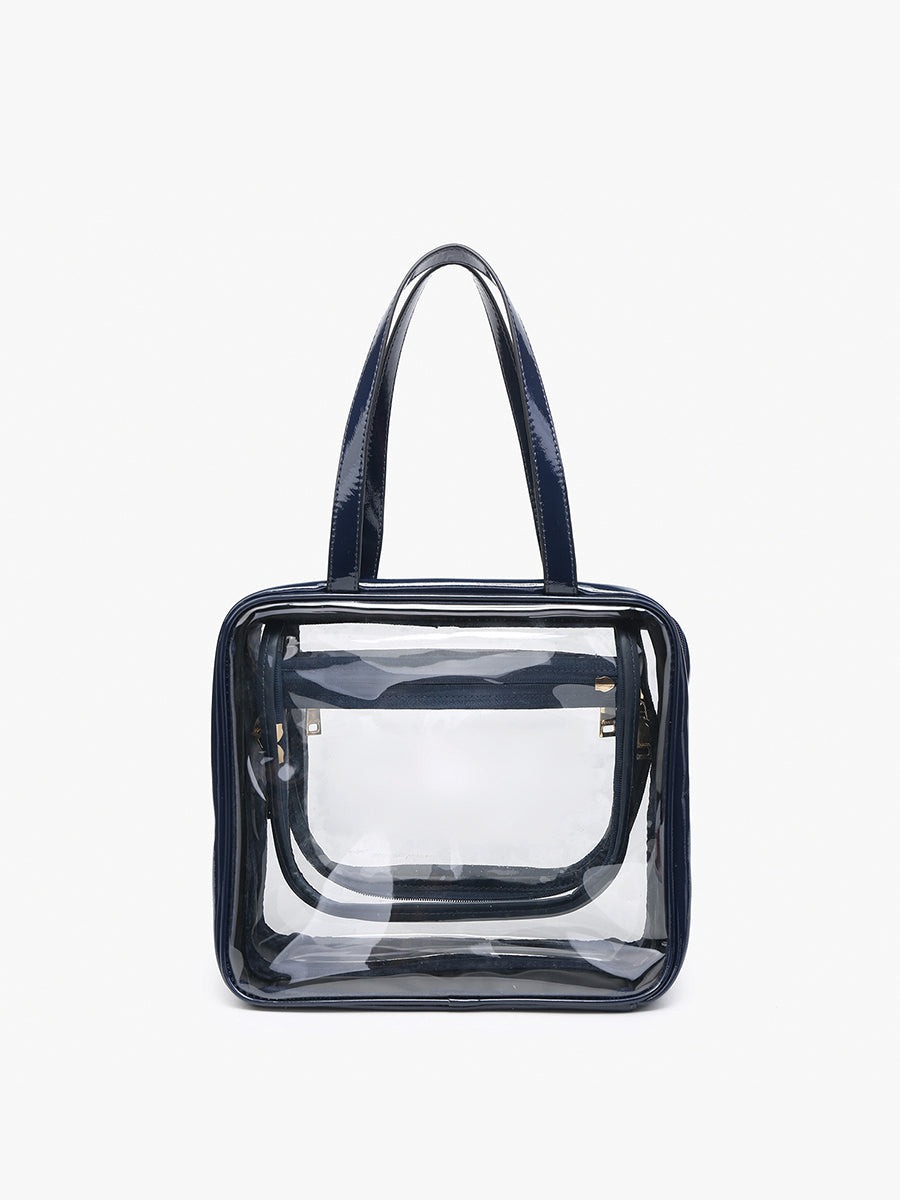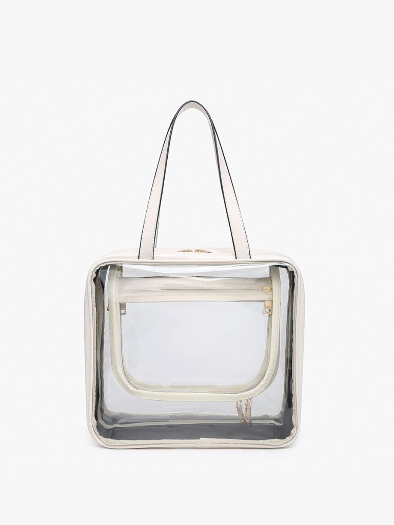 The Rae Large Clear Cosmetic Case is designed for convenient organization with multiple zip compartments and a sturdy handle. Perfect for storing cosmetics or toiletries, this case offers both visibility and practicality, making it easy to locate your essentials.