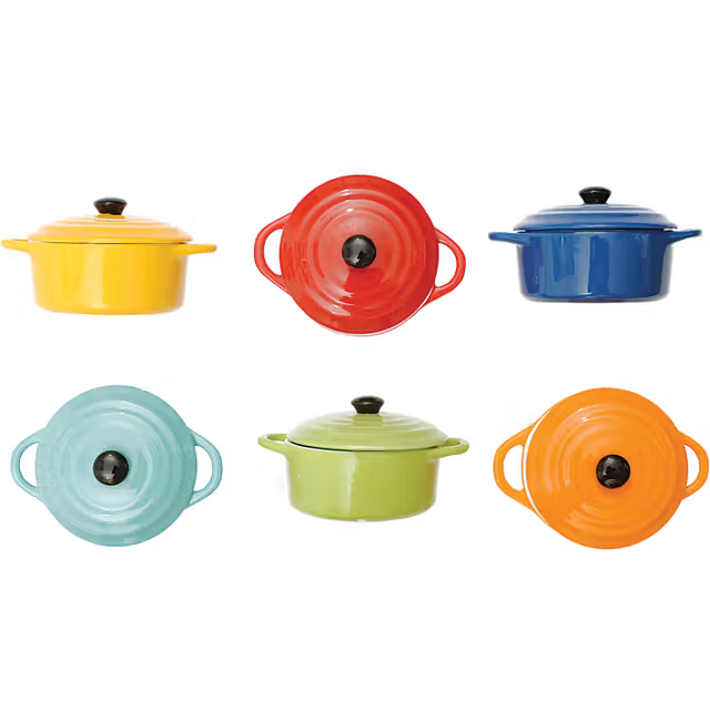 Crème br lée, bread pudding, individual stews, baked Brie: the possibilities are endless with these adorable mini bakers in shades of red, yellow, green, aqua, orange, and blue!