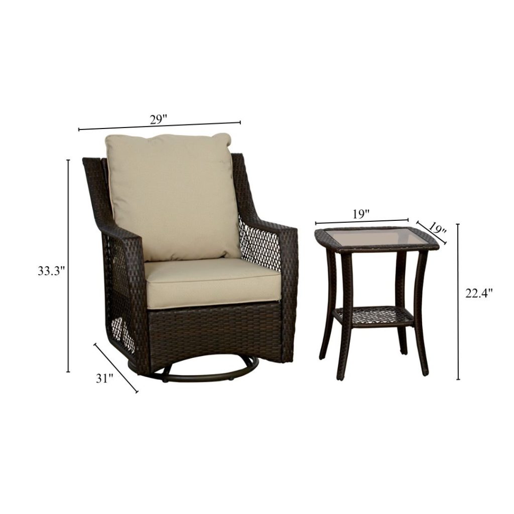 - Swivel Rocker Chair: W 29″ x D 31″ x H 33.3″