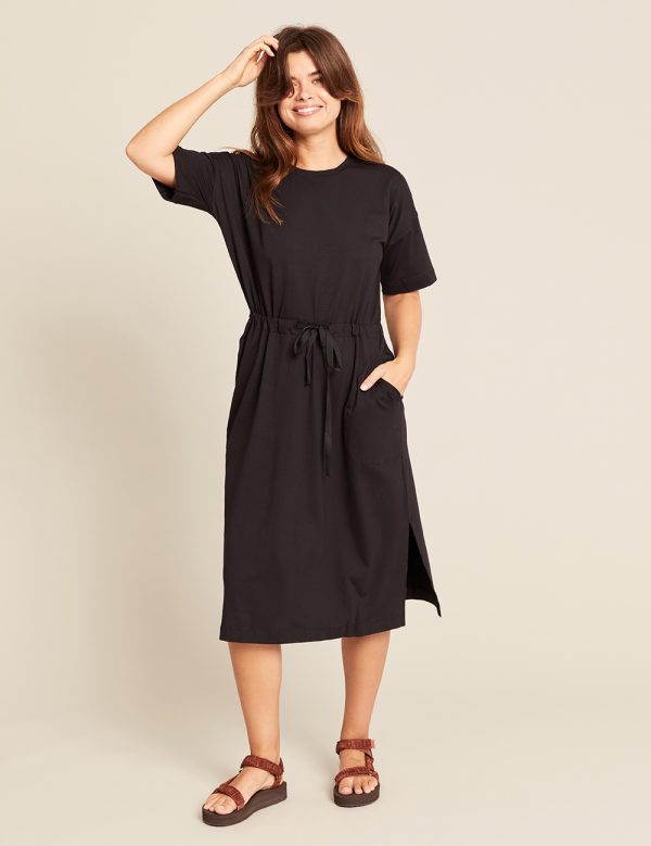 Made from a premium blend of 67% viscose made from bamboo, 28% organic cotton, and 5% elastane, this dress offers a soft touch, gentle stretch, and breathable comfort ideal for year‑round wear.