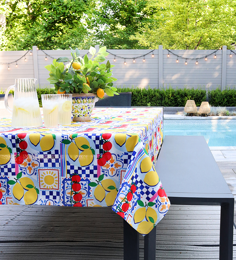 Designed to bring a light, airy feel to everyday dining and warm-weather entertaining, this collection features a beautifully textured linen tablecloth.