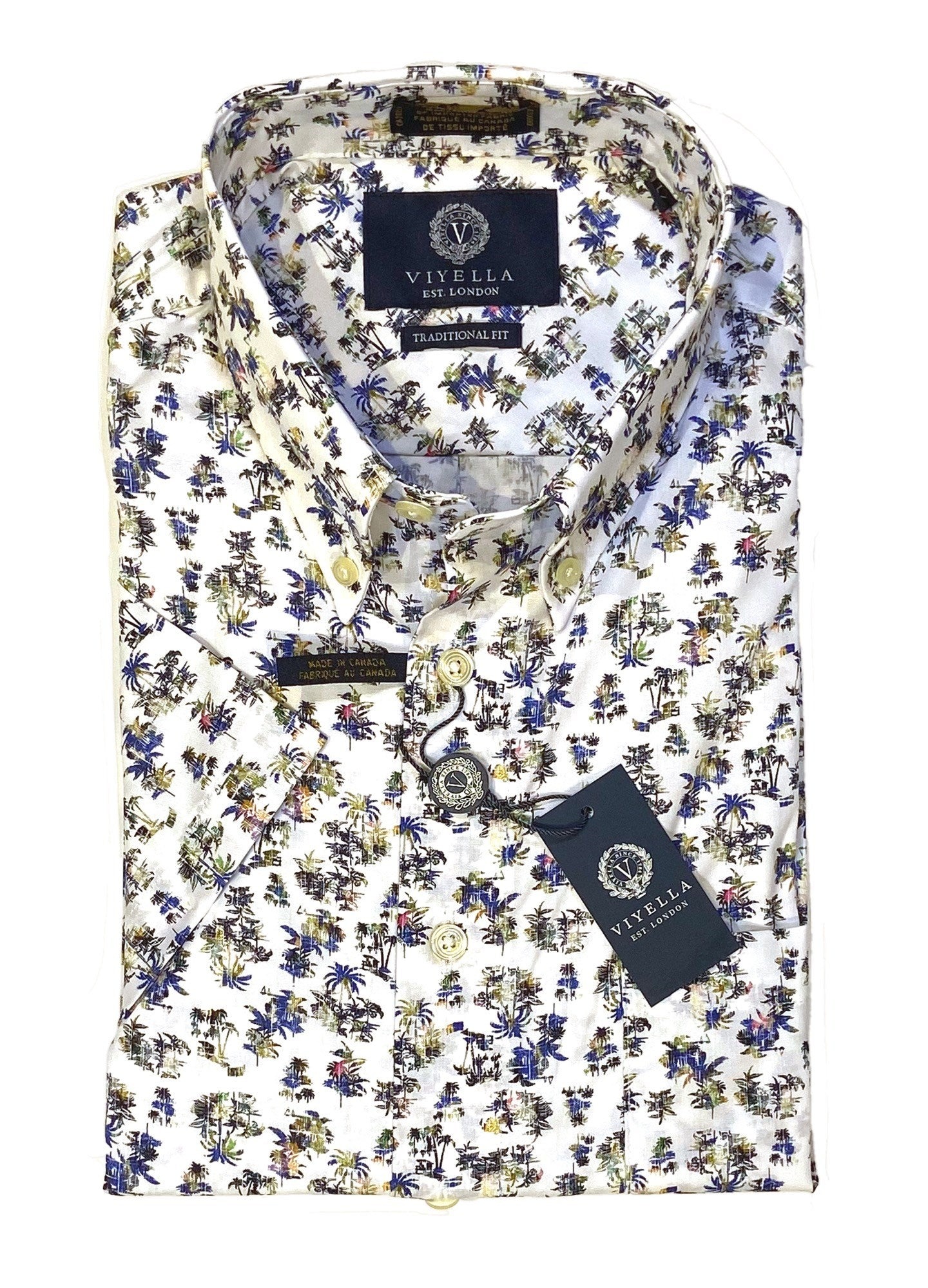 Viyella Made in Canada White Island Print Short Sleeve Shirt