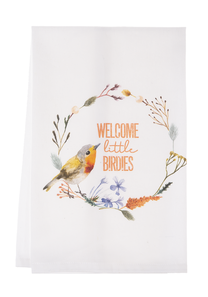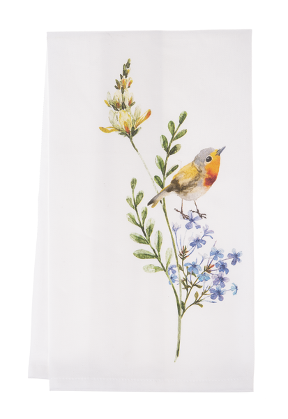 - Each towel features delightful wildflower and bird artwork on soft cotton
