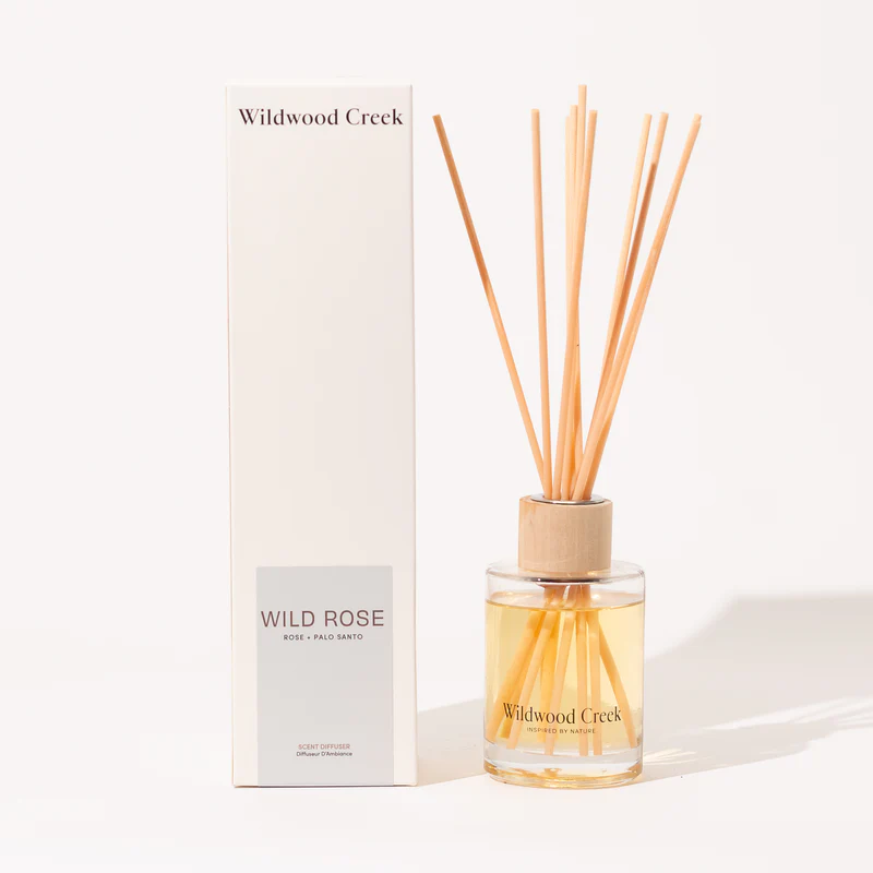 Wild Rose Reed Diffuser: Our Signature Scent Diffuser offers a continuous, effortless way to bring a sense of harmony and balance to your space, providing lasting fragrance without the flame.
