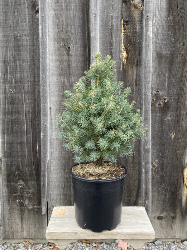 | This striking evergreen has grey-blue needles on stiff branches, perfect for winter decorating. Baby Blue Spruce are naturally pyramidal in form and offers year round interest as a specimen or in groups. Low maintenance. Salt tolerant. Grows 25′ high and 14′ wide. Full sun |