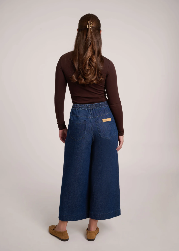 Every woman’s wardrobe needs a cropped go-to wide-leg named Belinda, and this is it. With a high-rise drawstring waist, sleek pocketless front, and easy drape, these jeans are all about modern polish with no extra effort. Pair with ankle boots or knee-highs and go.