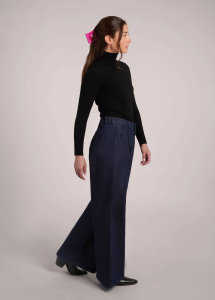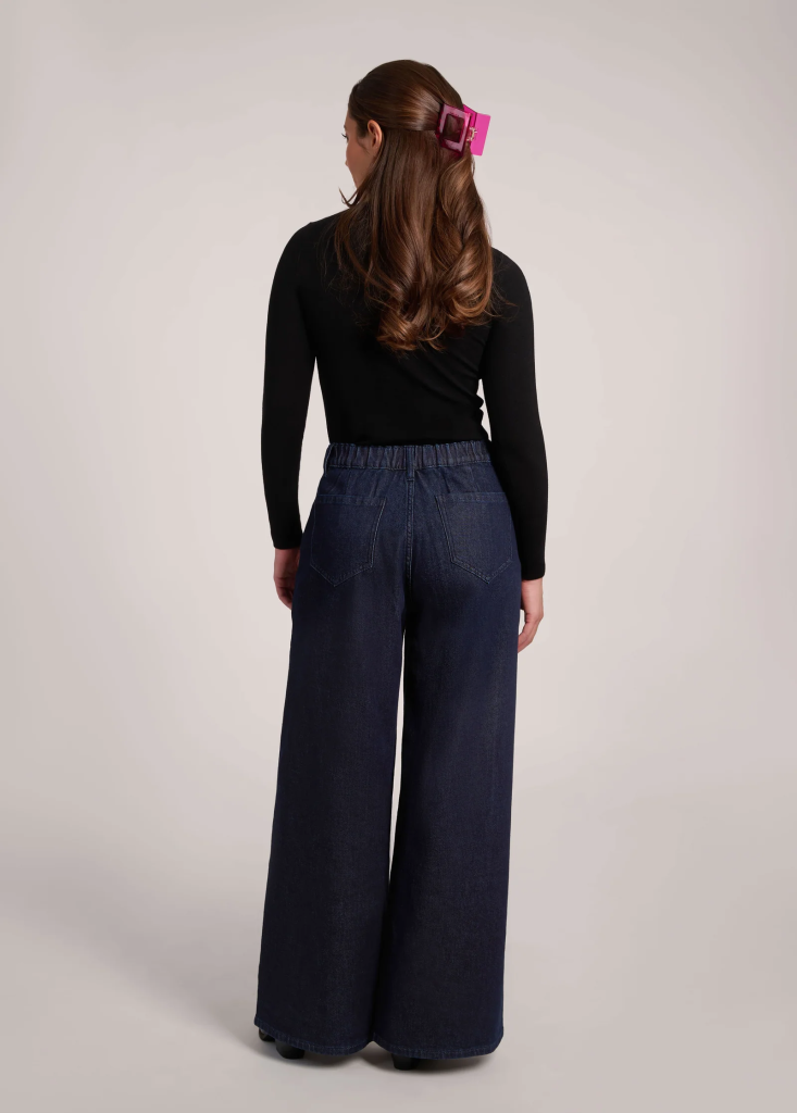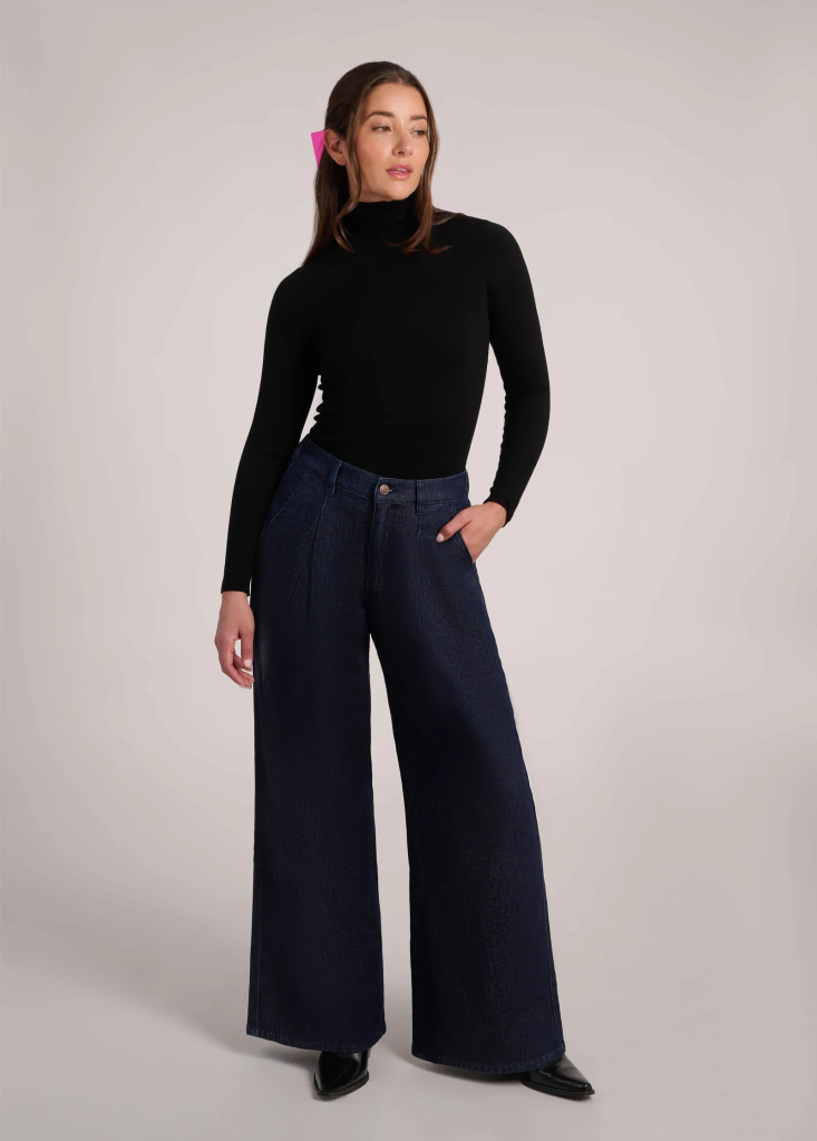 Elevate your denim game with Elera — the perfect blend of sharp tailoring and laid-back ease. Wide-leg with front pleats, back welt details, and a soft half-elastic waistband, this is your power pant in disguise.