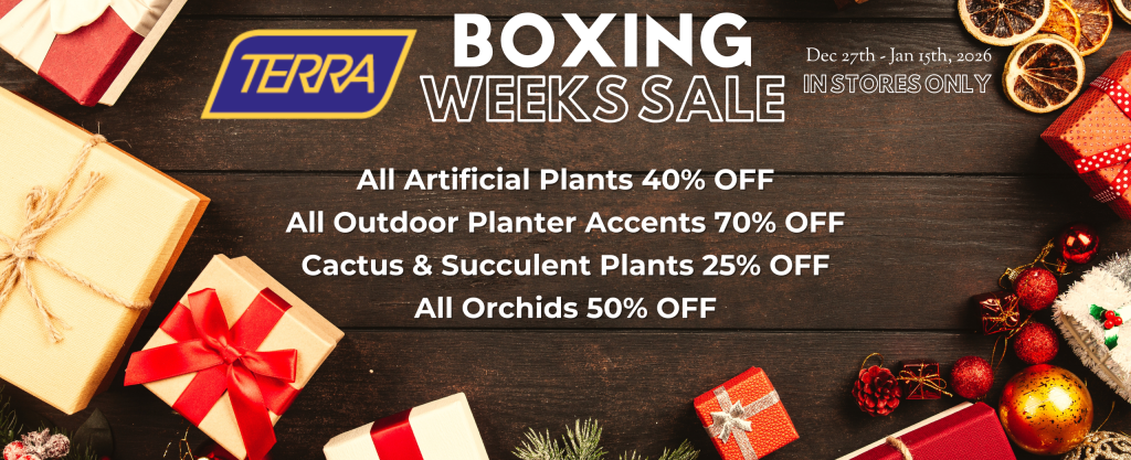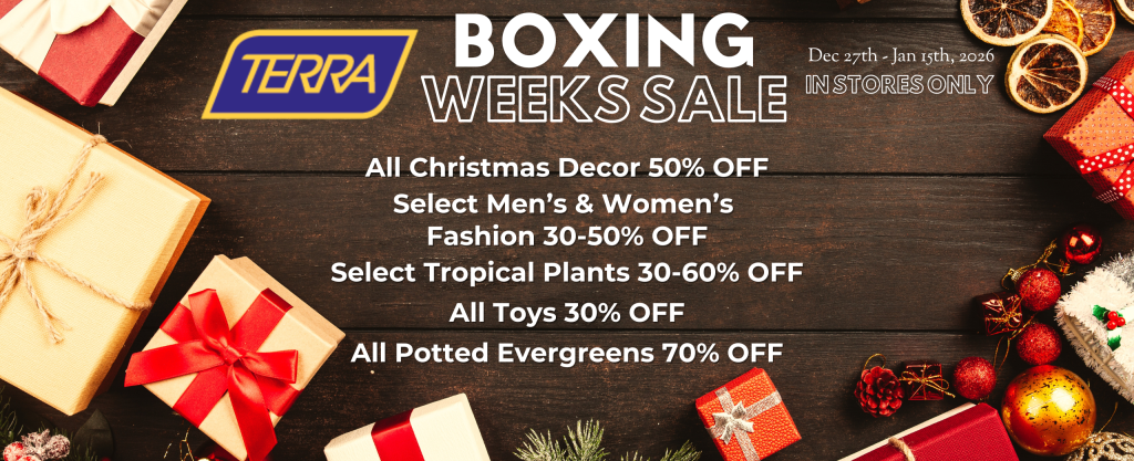 This year, we’re taking a slower approach to post-holiday shopping at TERRA. From December 27th through January 15th, enjoy Boxing Weeks at TERRA - an extended period of in-store specials designed to give you time to browse, discover, and treat yourself without the rush of daily door crashers. Think of it as your excuse to wander the greenhouse and enjoy a little winter escape… plus some great finds along the way.