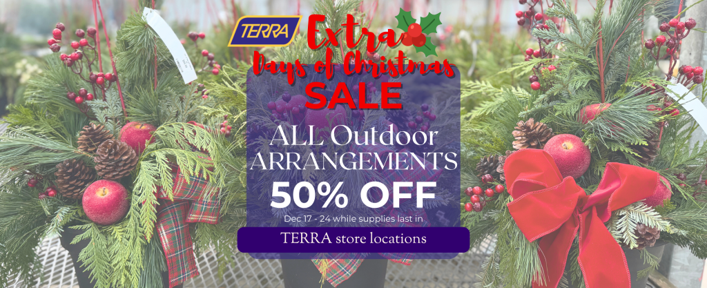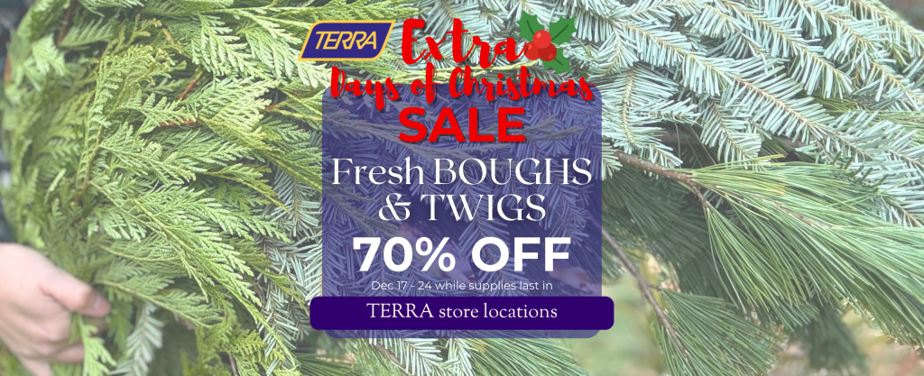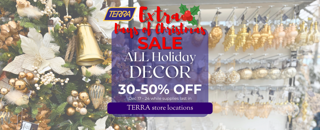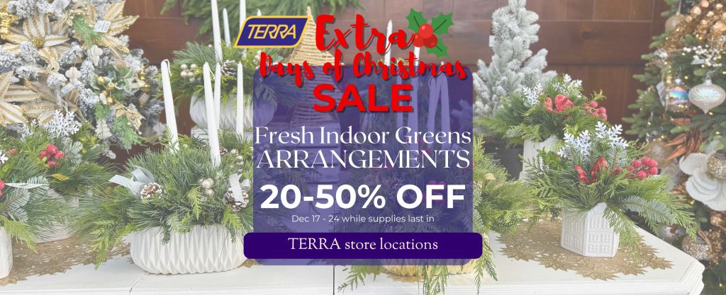 Holiday savings are in full bloom! Find weekly deals and daily door crashers on Christmas décor, fresh evergreens, holiday plants, and unique gifts - all at TERRA Greenhouses. Don't forget, there are even more specials and sales to be found in our store locations, and our Daisy Club members get exclusive discounts. Not a member yet? It's free to join!