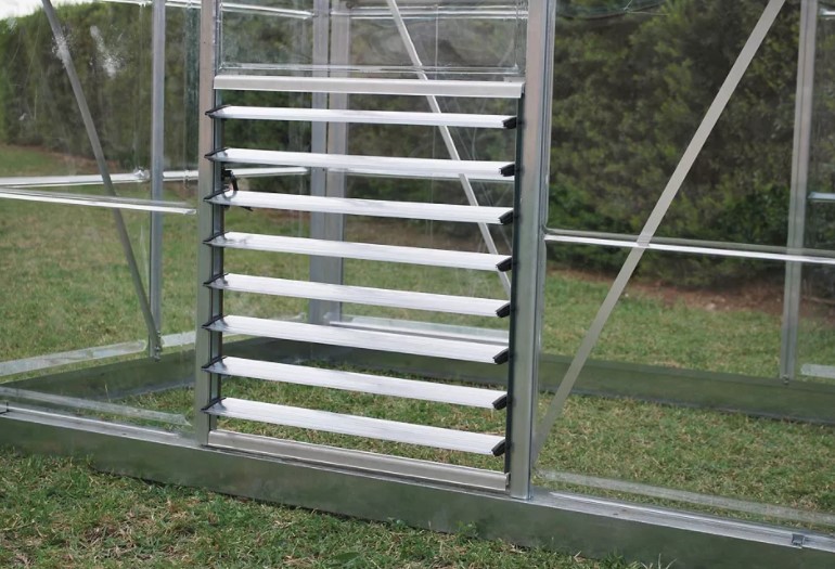 The Side Louver Window was designed to improve air circulation and help control the temperature in select Palram greenhouses. The shutters are controlled manually for variable airflow. When paired with the roof vent, the louver window can provide improved air circulation. Additionally the Side Louver Window can be fitted with Palram’s Automatic Louver Opener to provide the ideal airflow into the greenhouse.