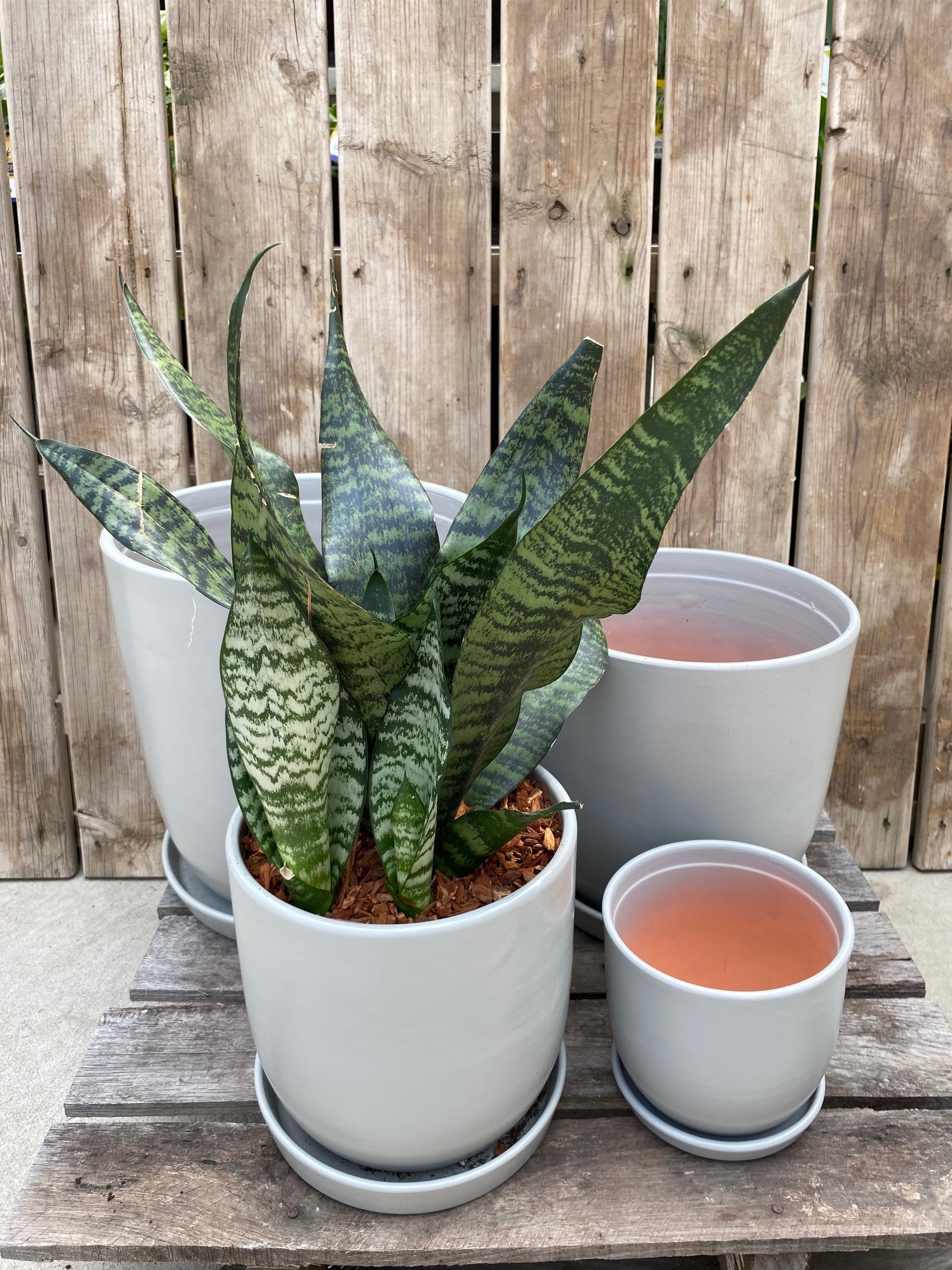 Durable ceramic featuring an attached saucer and drainage hole. This classic indoor pot design comes in three neutral colour options with a smooth, matte finish.