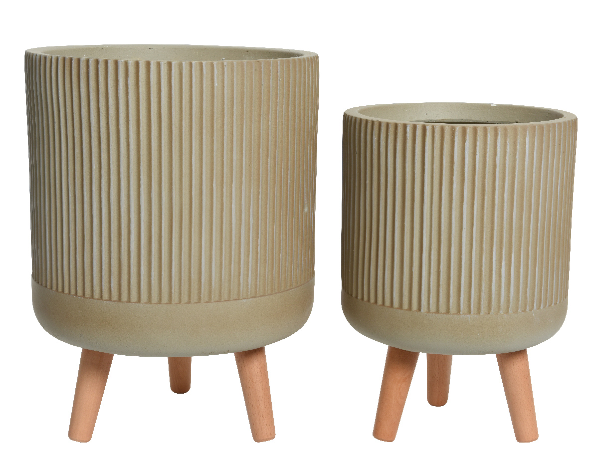 The lightweight Logan Fibreclay Planter comes perched on trendy beechwood legs, adding a modern vibe to your indoor oasis. This planter is available in two sizes. Made with fibreclay, this planter is lightweight, yet strong and durable. The exterior of the planter has a vertical lined texture, adding a aesthetically pleasing texture. Suitable for indoor use.