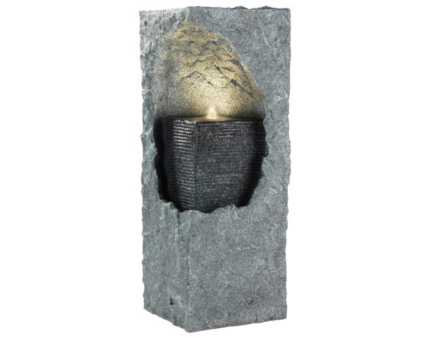 The Raito Outdoor Fountain has a pillar shape and gives a warm, romantic look with the fountain being “carved” into the middle of the pillar. The pillar being wrapped around the fountain portion really showcases this water feature. Made with polyresin, this fountain is extremely light weight, and is made to last outdoors.