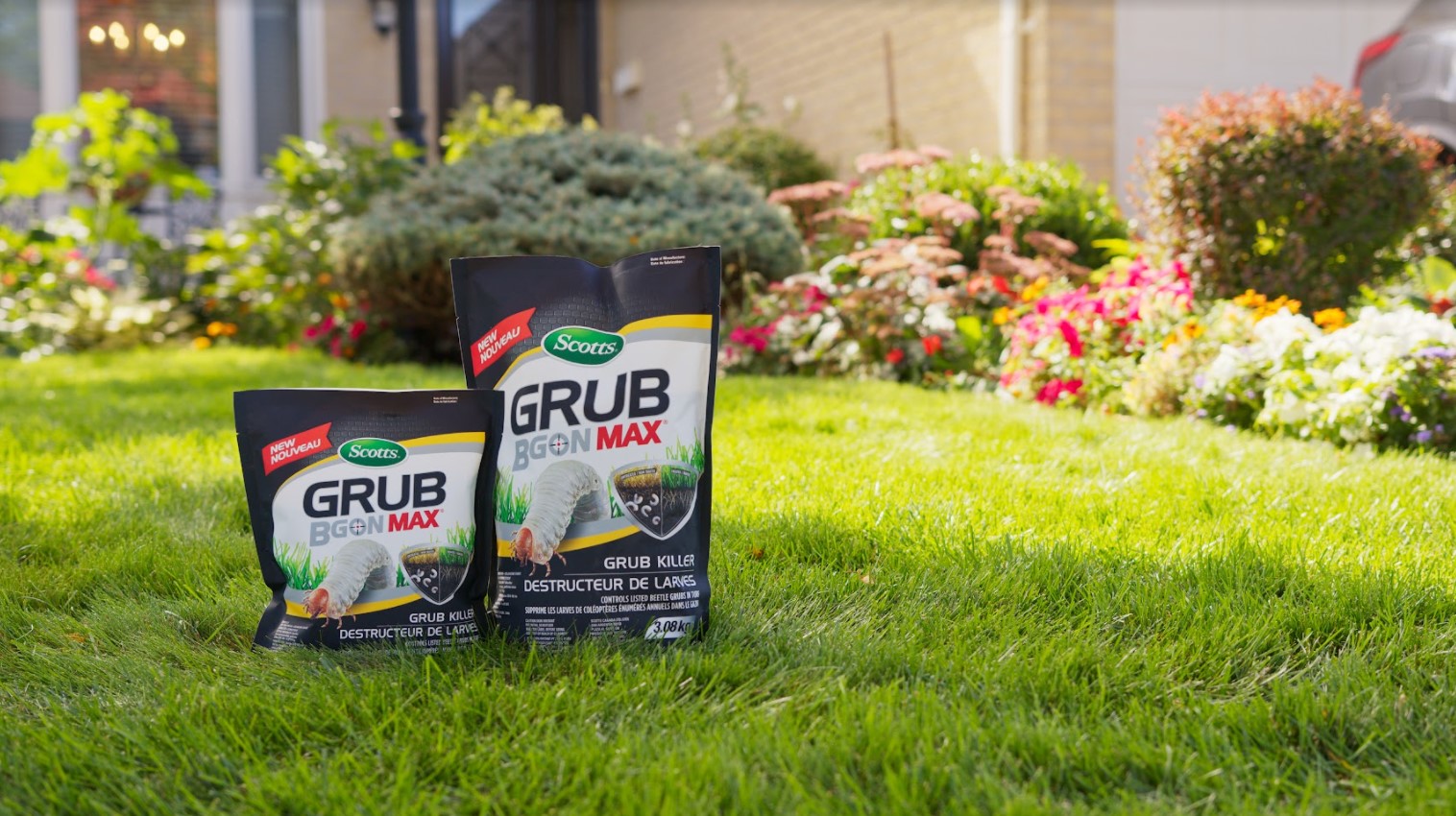 Dead or brown patches in the turf? Turf that easily lifts up and peels back, revealing sorry-looking roots (or none at all)? Dig-holes caused by skunks or raccoons? The culprit is most likely grubs. Stop grubs by applying Scotts® Grub B Gon® MAX Grub Killer, then watering-in to a depth of about 1.25 cm. When applied as directed, the active ingredient – a live, soil-borne organism – is released down into the soil and root zone where grubs live. As grubs eat plant roots, they also ingest the active ingredient, effectively putting a stop to them and their destruction. Controls a variety of beetle grubs, including June beetles and chafers.*
