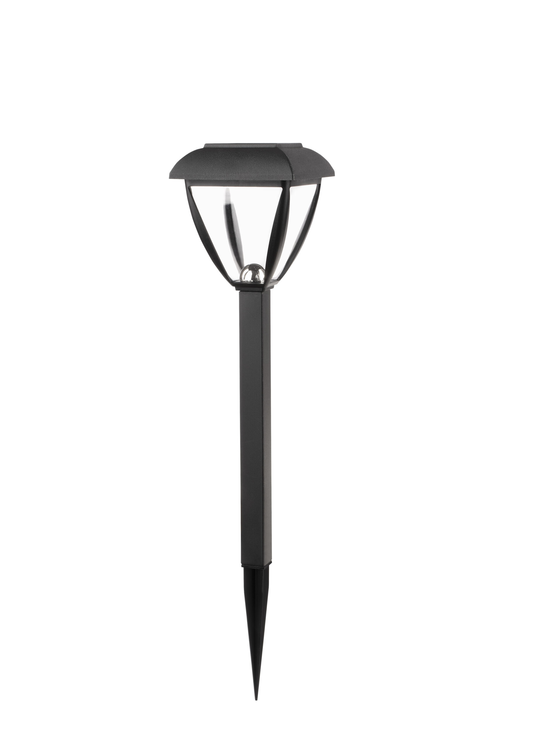 This Solar Pathway light features contemporary, simplistic styling combined with durable metal and plastic construction; with a gun metal finish and clear lens that illuminates with 1 white LED (3 lumens) of light output.