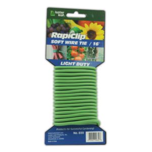 For bundling, binding and fastening in the home and garden. Strong, flexible, waterproof and reusable green plastic coasted wire material.