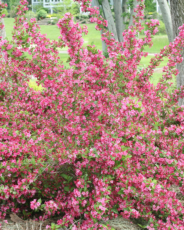 Weigela start bursting into bloom in mid-June, and they steal the show through the early part of the summer with their unique tubular flowers. They attract butterflies and hummingbirds, and are generally worry-free. Even better, the newest varieties of Weigela now bloom a second time, later in the summer, for double the flowers in a single season. Beautiful foliage in a range of shades from dark burgundy to bright variegation looks lovely in the landscape, even when the bloom ends.